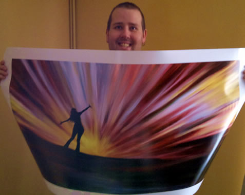 The wonderfullness has arrived! It came today! The best painting in the entire world! My very own print of Courageous by Christina Deubel came in the post all the way from the US. I could not be happier right now! A huge HUGE thank you goes out to Christina…massive…we’re talking hooj here! I had to take a quick photo and post it up with my cheesy grin, yeah I know, not the best photo taken but hey, I’m happy!