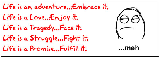 I love this post to my very core. I’m glad I’m not the only one who thinks this way. I feel inspired to have a lengthy talk to my cousin about this Path of Meh business. I’m just grateful that we still have some form of close communication and I hope to use it before he decides to cut everyone (older) out of his inner reasoning circle.