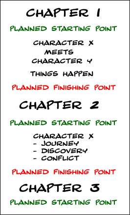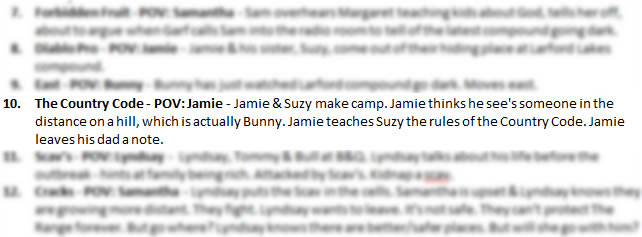 This is an actual screen shot of the chapter layout from The Holt. Jamie and Suzy have fairly simple instructions. How they carry them out is up to them so long as they get where I want them to be.