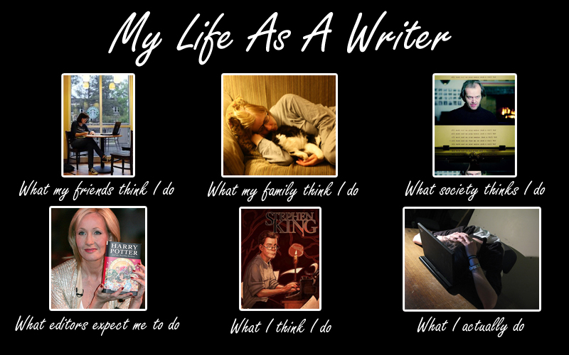 Actually, we’ll get to that in a bit. First let’s get the glorified image people often have of writers out of the way. Here are 3 to giggle at. These are generalisations folks, you know, for fun?