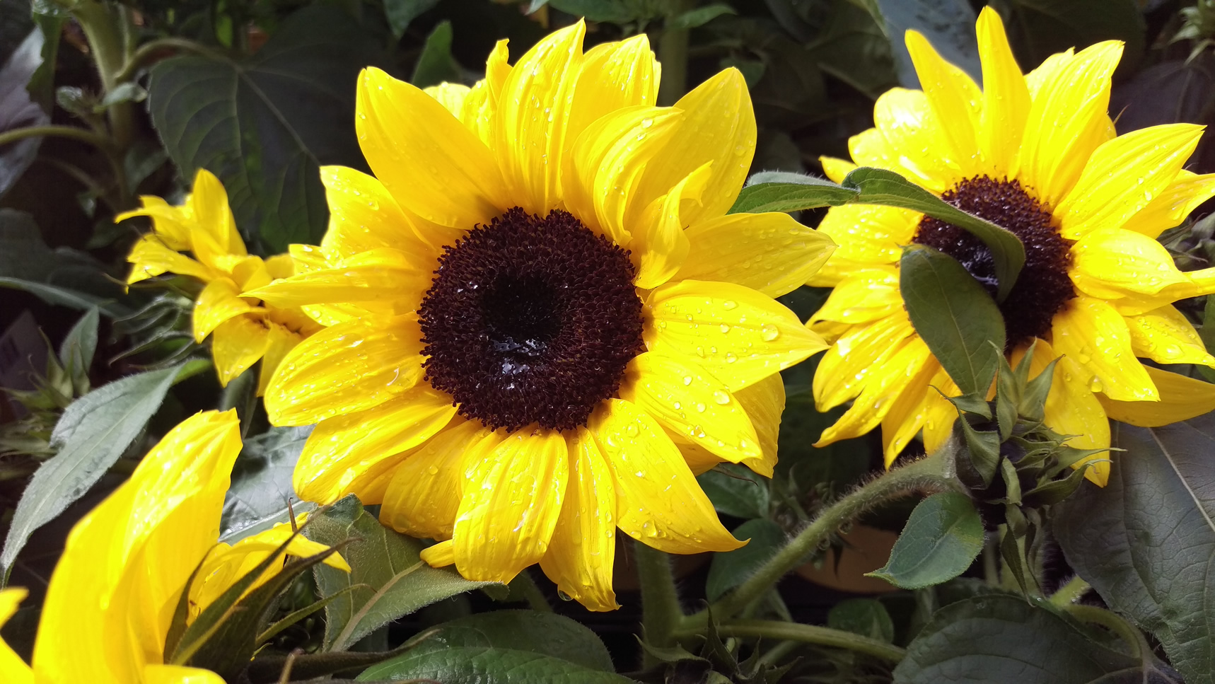 Even the sunflowers are lovin a good splash of water.