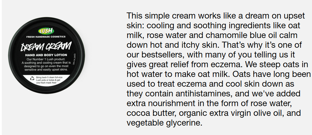 If you’re a sufferer of this filthy shit pile of skin lurgy, then get over to Lush and search for Dream Cream.