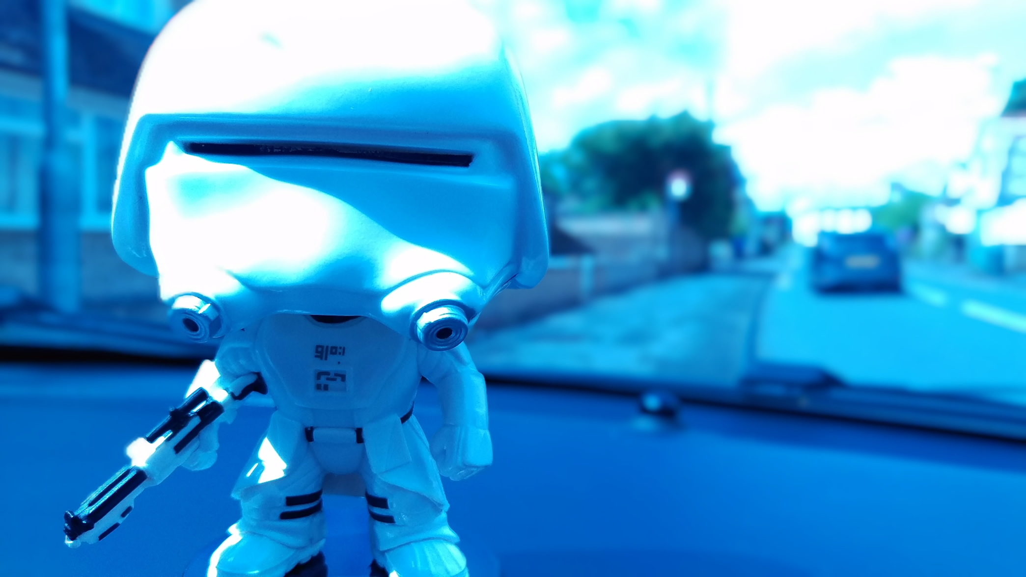 And here’s a picture of a Stormtrooper bobble head in my car.