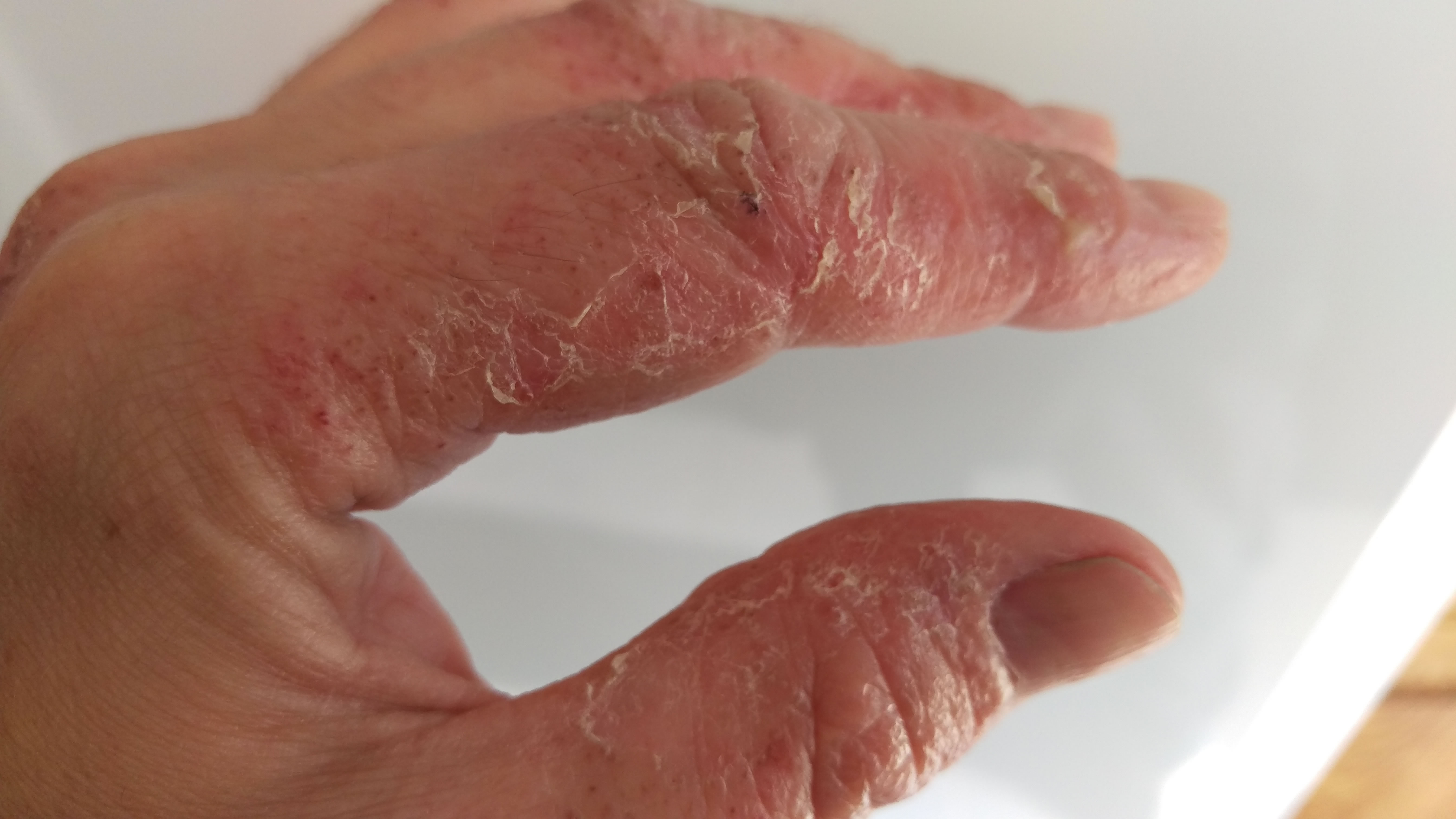 Previous explosions have been limited to my index fingers. This year it spread to all fingers and thumbs and has started creping up the backs of my hands.