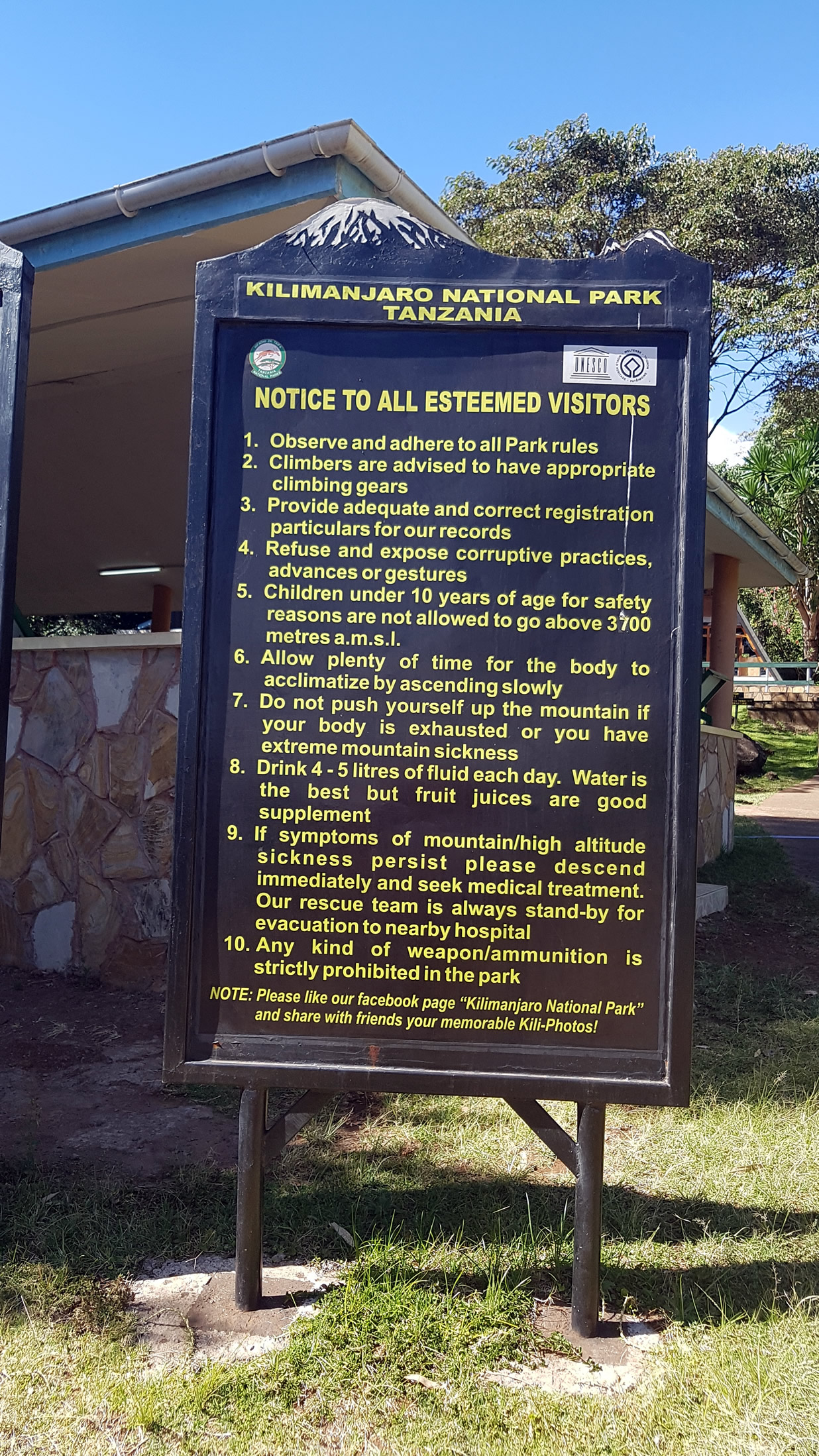 Take a look at the sign of rules for climbing the mountain.