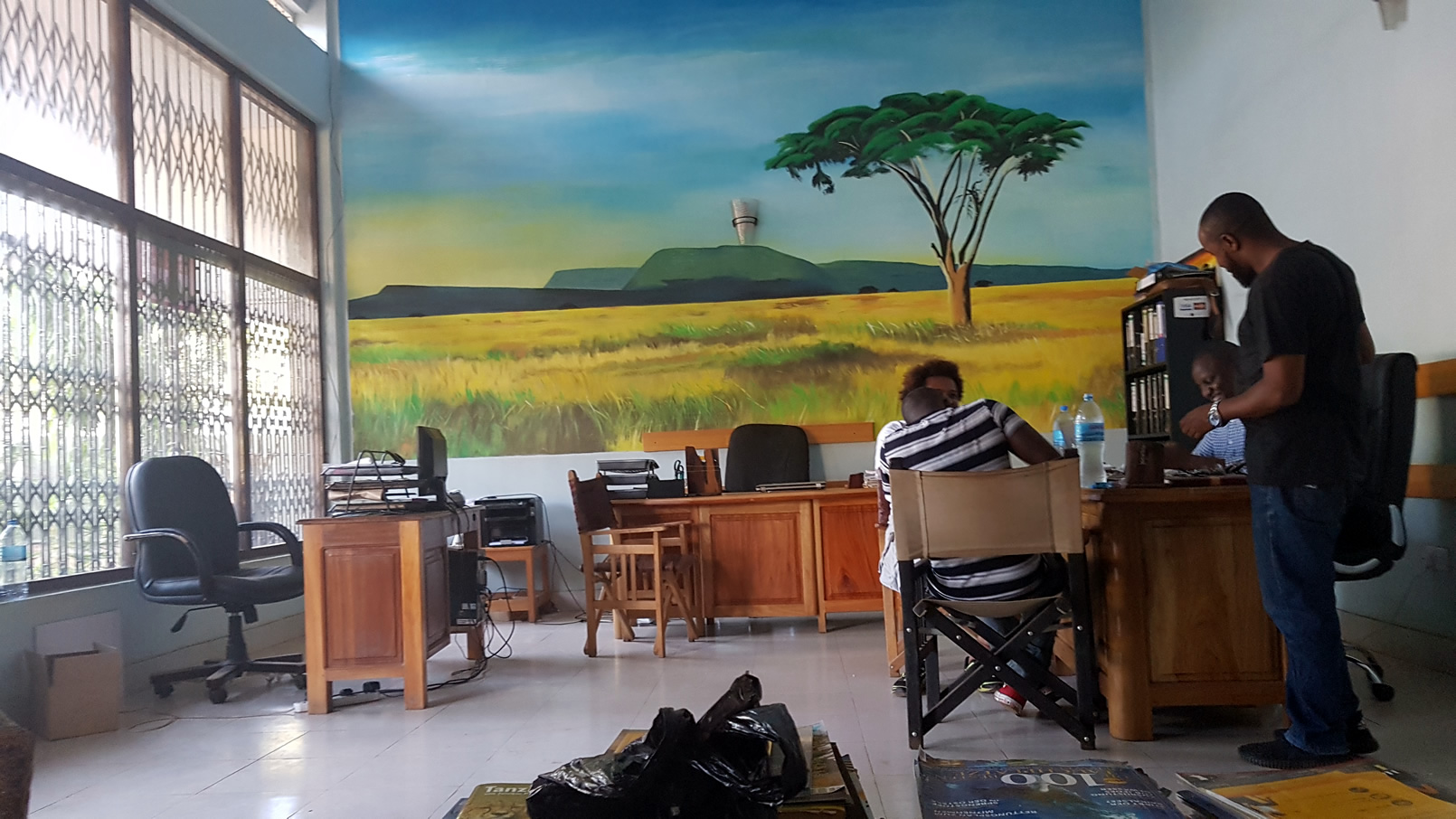 Back in town Mussa was way more relaxed now he had his licence card again. We stopped by Pristine Trails office where I took a picture of their wall art. It’s pretty amazing.