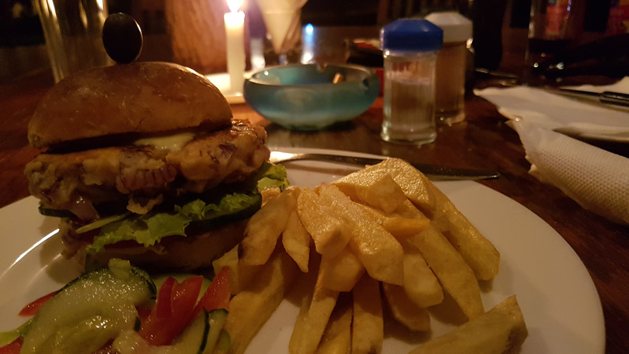 The chicken burger was surprising. It wasn’t a lump of reconstituted chicken paste fried from frozen, but actual chunks of chicken freshly made in the kitchen. An interesting and very tasty approach.